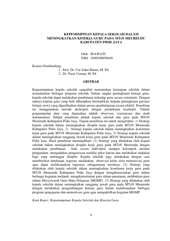 Baca Juga : KEPEMIMPINAN KEPALA MADRASAH DALAM MENINGKATKAN KINERJA GURU PADA MTSN BANDAR DUA KABUPATEN PIDIE JAYA (SHALAHUDDIN, 2016)