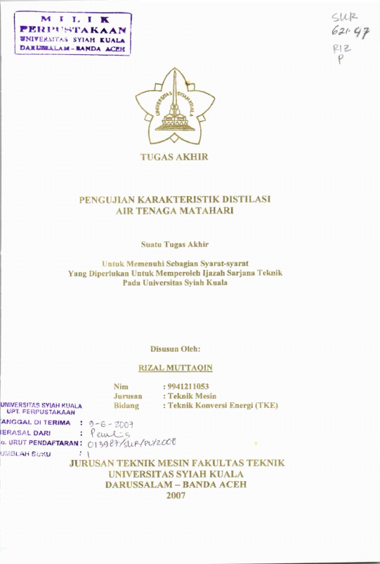 Baca Juga : SISTEM DISTILASI AIR LAUT BERTENAGA MATAHARI DENGAN MENGGUNAKAN KOLEKTOR CEKUNG LINIER (Yulma Erma Yanti, 2013)