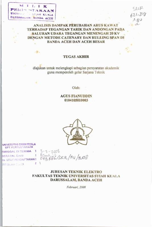 Baca Juga : STUDI ANALISIS KELENGKUNGAN (SAG) DAN TEGANGAN TARIK (TENSION) PADA PENGHANTAR SALURAN UDARA TEGANGAN TINGGI 150 KV GARDU INDUK BANDA ACEH - SIGLI (Rijalul Fikri, 2024)