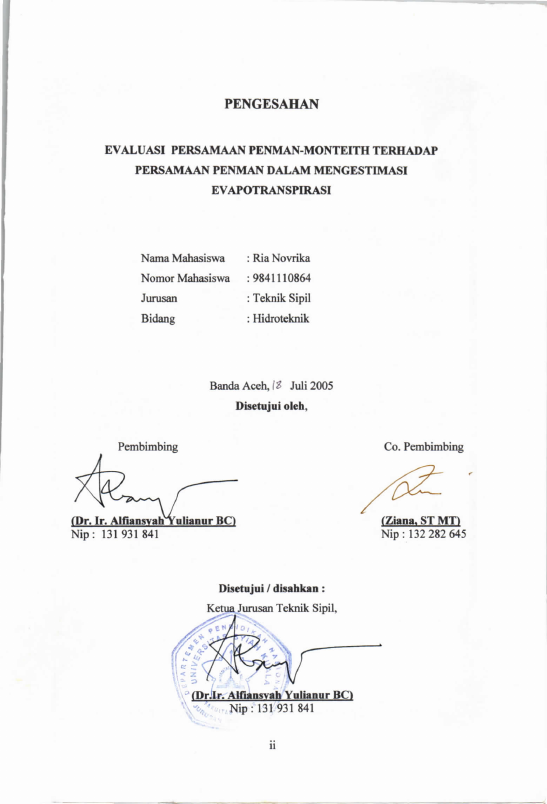 Ria Novrika, EVALUASI PERSAMAAN PENMAN-MONTEITH TERHADAP PERSAMAAN PENMAN DALAM MENGESTIMASI EVAPOTRANSPIRASI. Banda Aceh Fakultas Teknik,2005