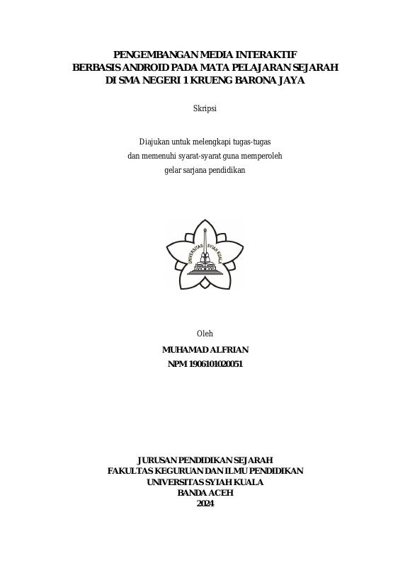 Muhamad Alfrian, PENGEMBANGAN MEDIA INTERAKTIF BERBASIS ANDROID PADA MATA PELAJARAN SEJARAH DI SMA NEGERI 1 KRUENG BARONA JAYA. Banda Aceh Fakultas KIP Pendidikan Sejarah,2024