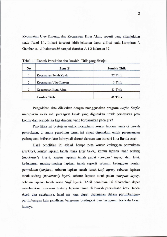 Fitria Phonna, INTERPRETASI BEARING LAYER (KONTUR LAPISAN TANAH KERAS) DIBAWAH PERMUKAAN DENGAN PROGRAM SURFER (KECAMATAN : SYIAH KUALA- ULEE KARENG - KUTA ALAM). Banda Aceh Fakultas Teknik,2010