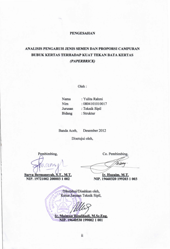Yulita Rahmi, ANALISIS PENGARUH JENIS SEMEN DAN PROPORSI CAMPURAN BUBUK KERTAS TERHADAP KUAT TEKAN DATA KERTAS (PAPERBRICK). Banda Aceh Fakultas Teknik,2012