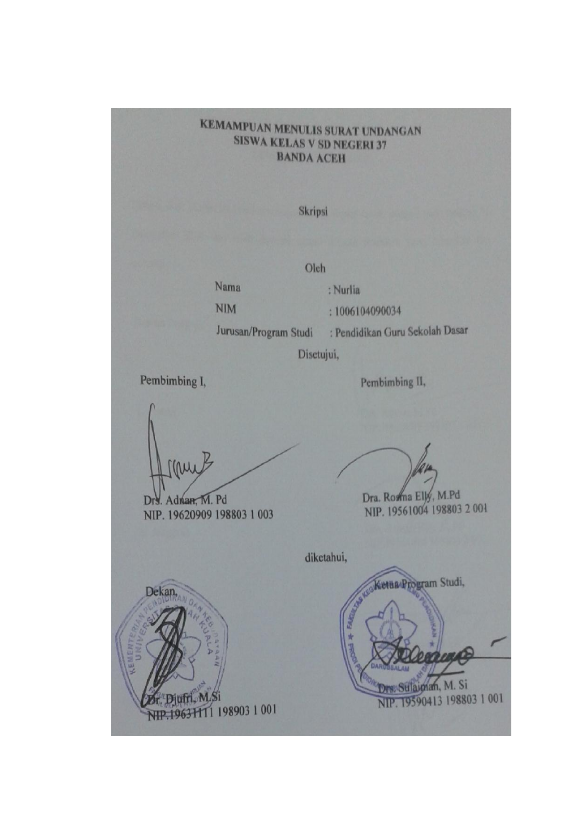 Nurlia, KEMAMPUAN MENULIS SURAT UNDANGAN SISWA KELAS V SD NEGERI 37 BANDA ACEH. Banda Aceh Fakultas Keguruan dan Ilmu Pendidikan,2014