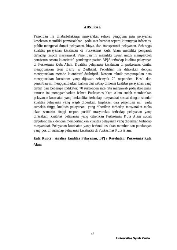 FARHAN RIZQULLAH, PERSEPSI KUALITAS PELAYANAN KESEHATAN DI PUSKESMAS KUTA ALAM KOTA BANDA ACEH. Banda Aceh Fakultas Ilmu Sosial dan Politik,2024