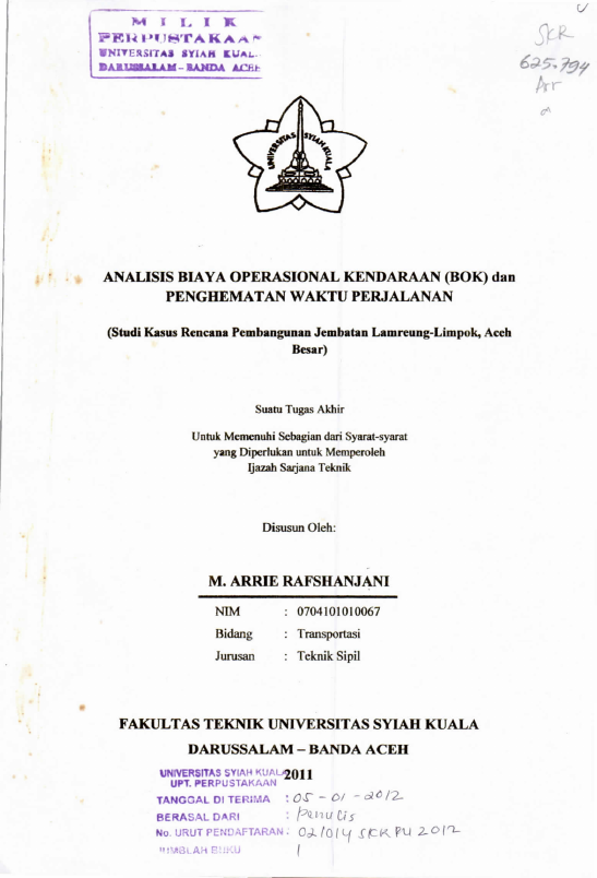 Baca Juga : ANALISIS BIAYA OPERASIONAL KENDARAAN DAN BIAYA WAKTU PADA JALAN ALTERNATIF MENDALE – SIMPANG KRAFT KABUPATEN ACEH TENGAH (Eka Satrya Putra, 2014)