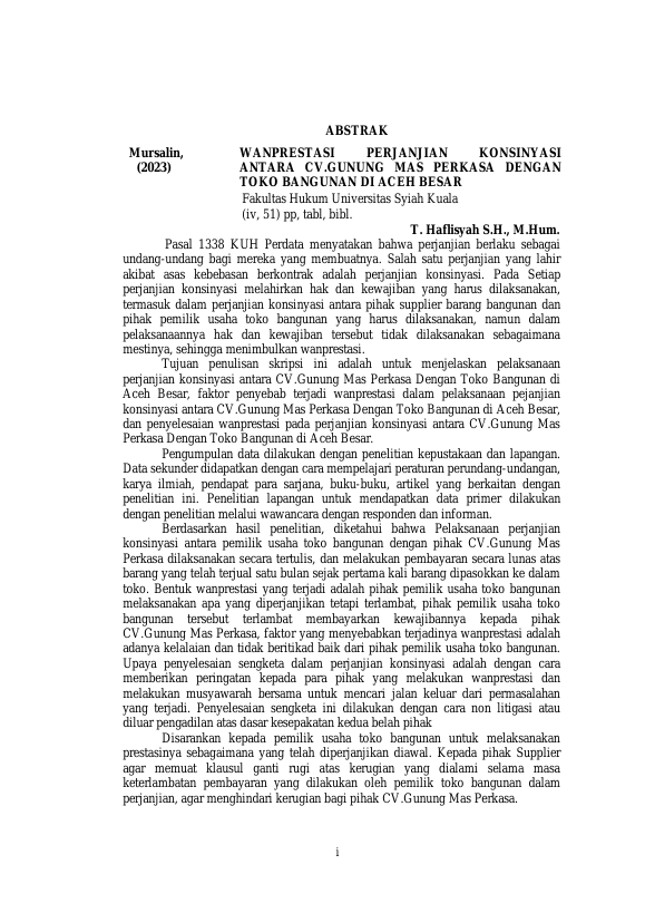 Baca Juga : PERJANJIAN KONSINYASI ANTARA PRODUSEN KUE BOLU DENGAN PIHAK SWALAYAN DI KABUPATEN ACEH BESAR (Muhd. Al-manfaluthy, 2019)