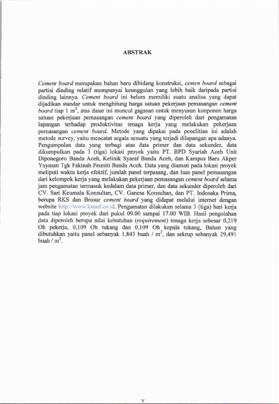 Nasrullah, ANALISA PRODUKTIVITAS TENAGA KERJA PADA PEKERJAAN PEMASANGAN CEMENT BOARD (STUDI KASUS PADA PROYEK PEMBANGUNAN GEDUNG BPD SYARIAH BANDA ACEH, PROYEK PEMBANGUNAN GEDUNG KELINIK SYARAF BANDA ACEH DAN PROYEK PEMBANGUNAN GEDUNG AKPER FAKINAH BANDA ACEH). Banda Aceh Fakultas Teknik,2008