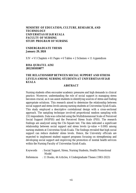 Baca Juga : HUBUNGAN DUKUNGAN KELUARGA DENGAN TINGKAT STRES DALAM PENYUSUNAN SKRIPSI DI MASA PANDEMI COVID-19RNPADA MAHASISWA FAKULTAS KEPERAWATAN UNIVERSITAS SYIAH KUALA (Sri Putri Akbari, 2022)