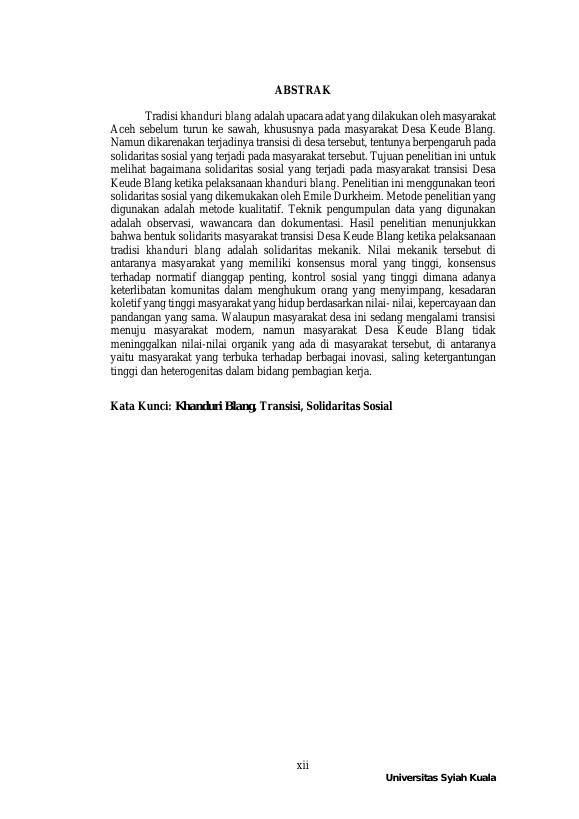 INTAN SHAFIRA, SOLIDARITAS SOSIAL MASYARAKAT TRANSISI PADA TRADISI KHANDURI BLANG (STUDI DI DESA KEUDE BLANG KECAMATAN IDI RAYEUK KABUPATEN ACEH TIMUR). Banda Aceh Fakultas Ilmu Sosial dan Ilmu Politik,2024