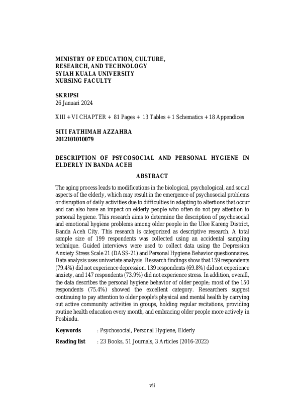 Baca Juga : PERSEPSI PASIEN TERHADAP PEMENUHAN KEBUTUHAN PERSONAL HYGIENE DI RUMAH SAKIT ZAINOEL ABIDIN BANDA ACEH (Ela Fadilla, 2024)