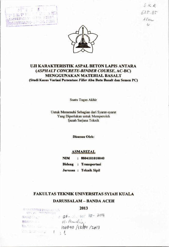 Baca Juga : KARAKTERISTIK BETON ASPAL (AC-BC) MENGGUNAKAN MATERIAL BASALT DENGAN VARIASI FILLER (ABU KILN DAN SEMEN PC) (safriadi, 2015)