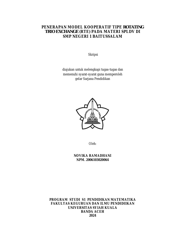 Novika Ramadhani, PENERAPAN MODEL KOOPERATIF TIPE ROTATING TRIO EXCHANGE (RTE) PADA MATERI SPLDV DI SMP NEGERI 1 BAITUSSALAM. Banda Aceh Fakultas KIP Pendidikan Matematika,2024