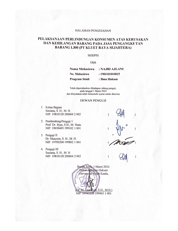 Baca Juga : TANGGUNG JAWAB JASA PENGANGKUTAN BARANG KARGO TERHADAP KERUSAKAN BARANG MILIK KONSUMEN (SUATU PENELITIAN DI PT. BURAQ CAESAR KARGO KOTA BANDA ACEH) (AHMAD FADHIL IZDIHAR, 2024)
