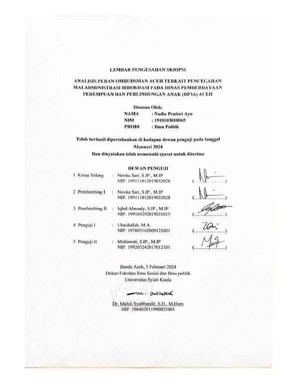 Baca Juga : UPAYA OMBUDSMAN PERWAKILAN ACEH DALAM PENCEGAHAN MALADMINISTRASI DI KABUPATEN BENER MERIAH (MEDI PRASETIAWAN, 2020)