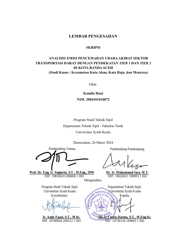 Baca Juga : ANALISIS EMISI UDARA SEKTOR TRANSPORTASI DARAT DI KOTA BANDA ACEH DENGAN MENGGUNAKAN METODE TINGKAT FAKTOR EMISI TIER 1 DAN TIER 2 (Roudhia Rahma, 2025)