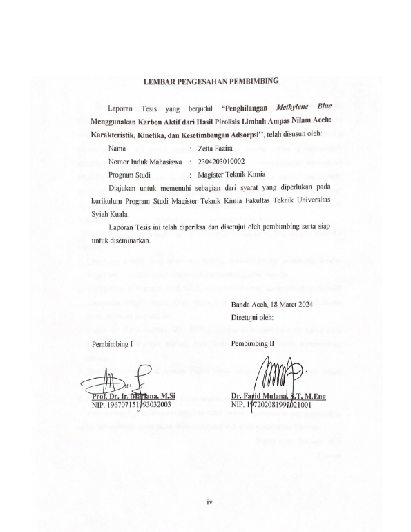 Baca Juga : PREPARASI DAN UJI DAYA SERAP BIOSORBEN AMPAS NILAM UNTUK PENGHILANGAN ZAT WARNA METHYLENE BLUE (Fairuza Hysna, 2024)