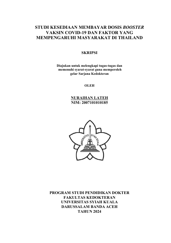Baca Juga : PENERIMAAN DOSIS BOOSTER VAKSIN COVID-19 DAN FAKTOR PREDIKTOR YANG MEMPENGARUHINYA DI THAILAND SELATAN (Miss Suwaibah Maduereh, 2024)
