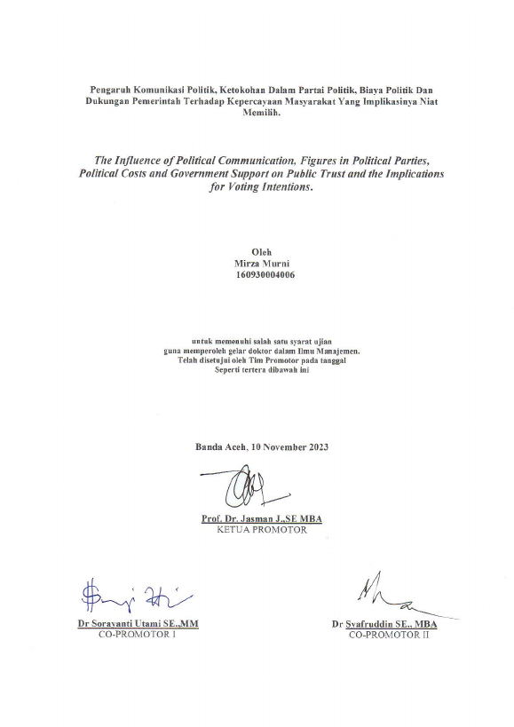 Baca Juga : PERSEPSI MASYARAKAT TERHADAP PARTAI POLITIK NASIONAL DI KECAMATAN KLUET UTARA KABUPATEN ACEH SELATAN (Muhammad Syahrawi, 2017)