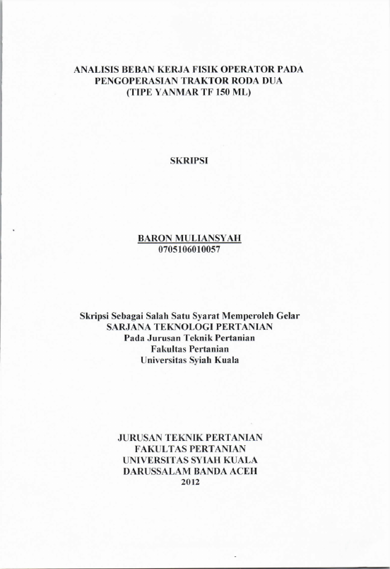 Baca Juga : ANALISIS BEBAN KERJA FISIK OPERATOR PADA PENGOPERASIAIN TRAKTOR RODA DUA (TIPE YANMAR TF - 150ML) (Baron Muliansyah, 2024)