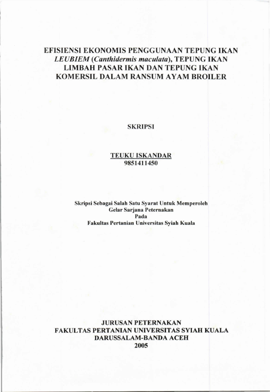 Baca Juga : KELAYAKAN EKONOMI PEMELIHARAAN AYAM BROILER DENGAN PENGGUNAAN TEPUNG LIMBAH IKAN LEUBIM (CANTIDERMIS MACULATA) DALAM RANSUM (RESMA AYUNDA RIZKINA, 2018)