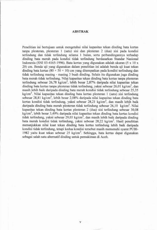 Raja Doa Ridha saputra, STUDI KAPASITAS TEKAN DINDING BATA KERTAS PADA KONDISI TERLINDUNG DAN TIDAK TERLINDUNG. Banda Aceh Fakultas Teknik,2012