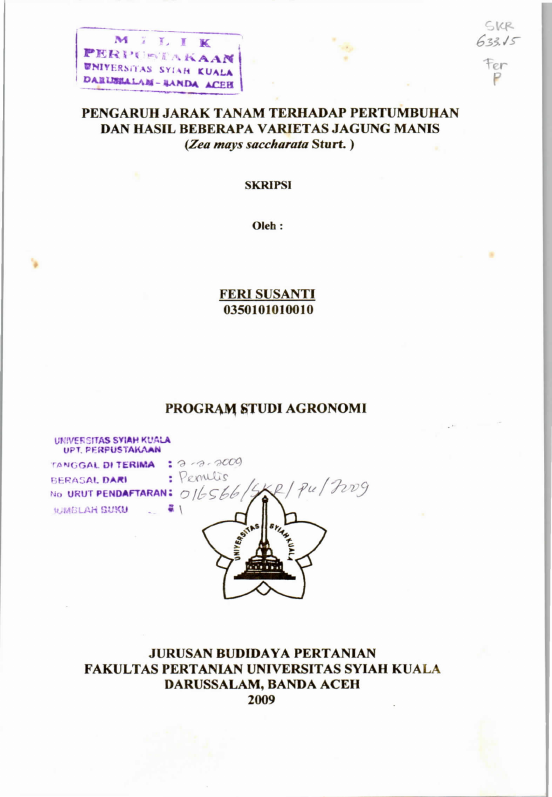 Feri Susanti, PENGARUH JARAK TANAM TERHADAP PERTUMBUHAN DAN HASIL BEBERAPA VARIETAS JAGUNG MANIS (ZEA MAYS SACCHARATA STURT. ). Banda Aceh Fakultas Pertanian,2009