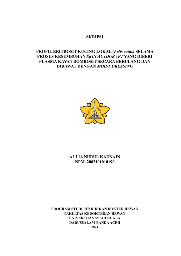 Baca Juga : PROFIL DARAH MERAH KUCING LOKAL (FELIS CATUS) SELAMA PROSES KESEMBUHAN SKIN GRAFT YANG DIBERI PLASMA KAYA TROMBOSIT DAN DIRAWAT DENGAN MOIST DRESSING (Elya Adelvina Nasution, 2022)