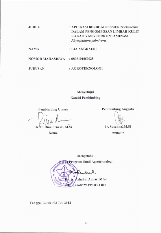 Baca Juga : APLIKASI SUSPENSI PELET TRICHODERMA HARZIANUM SEBAGAI AGEN PENGENDALIAN HAYATI (APH) PENYAKIT HAWAR DAUN (PHYTOPHTHORA PALMIVORA) PADA BIBIT KAKAO. (Yulfa Sari Tarigan, 2017)