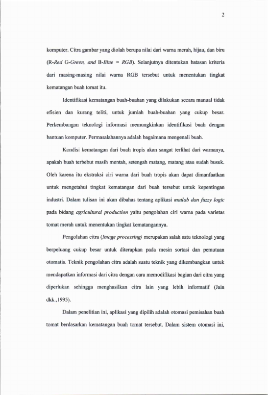 Wanarami, SORTASI BUAH TOMAT (SOLANUM LYCOPERSICUM) MENGGUNAKAN IMAGE PROCESSING DAN FUZZY LOGIC. Banda Aceh Fakultas Pertanian,2013