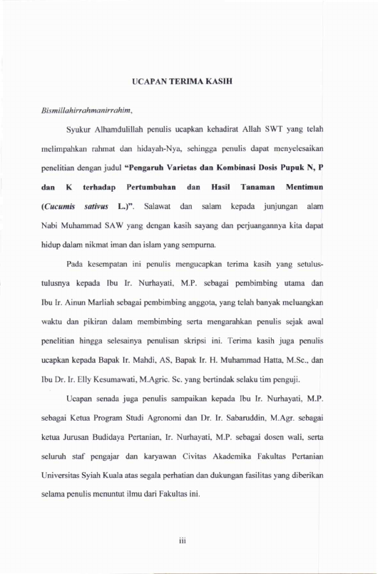 Milian Fazir, PENGARUH VARIETAS DAN KOMBINASI DOSIS PUPUK N, P DANK TERHADAP PERTUMBUBAN DAN HASIL TANAMAN MENTIMUN (CUCUMIS SATIVUS L.). Banda Aceh Fakultas Pertanian,2009