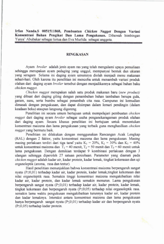 Baca Juga : PEMBUATAN NUGGET IKAN TUNA (THUNNUS SP) DENGAN VARIASI KONSENTRASI TAPIOKA DAN WAKTU PENGUKUSAN (Angga Ferdian, 2024)