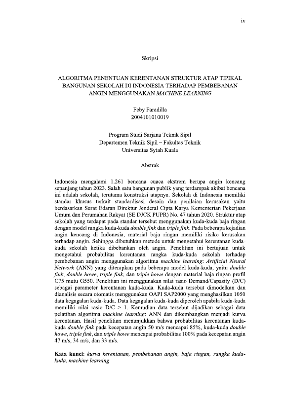 Baca Juga : ALGORITMA PENENTUAN KERENTANAN STRUKTUR ATAP TIPE DOUBLE FINK TERHADAP PEMBEBANAN TEPHRA VULKANIK MENGGUNAKAN MACHINE LEARNING (Qamara Ramadhana, 2024)