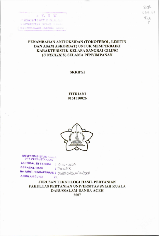 Baca Juga : KAJLAN SLNERGLSME KOMBINASI ANTLOKSIDAN A -TOKOFEROL DENGAN ASAM ASKORBAT, DAN BHA DENGAN BHT PADA KELAPA SANGRAI GILING (U NEULHEU) (Imti Putri Jayati, 2024)