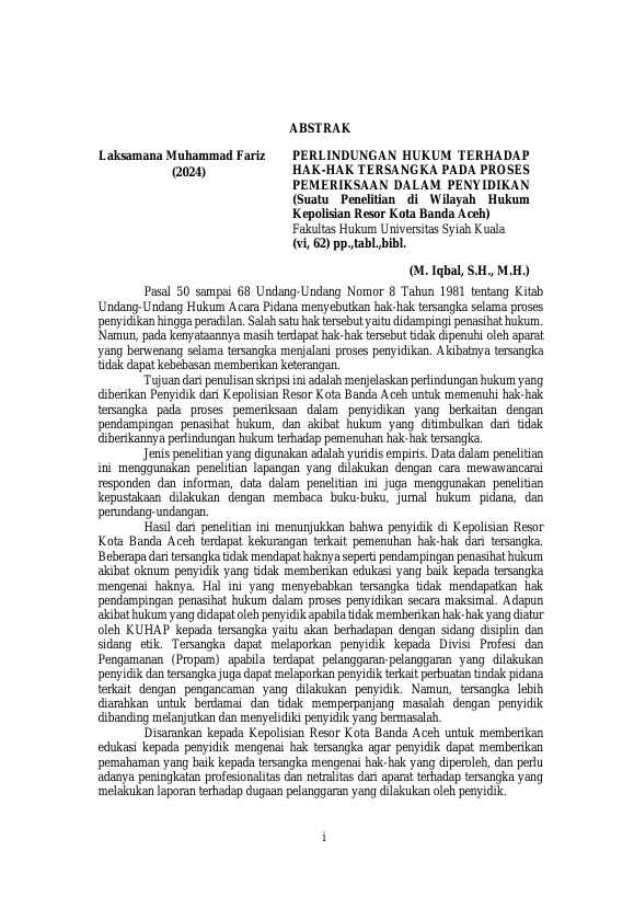 Baca Juga : PELAKSANAAN PENYIDIKAN DALAM PROSES PEMERIKSAAN TERSANGKA BERDASARKAN ASAS PRADUGA TAK BERSALAH ATAU PRESUMPTION OF INNOCENT (SUATU PENELITIAN DI WILAYAH HUKUM KEPOLISIAN RESOR ACEH BESAR) (LILIS MUNIRA, 2018)