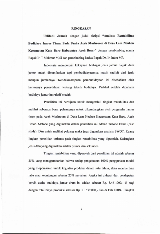 Baca Juga : ANALISIS KEUNTUNGAN USAHA BUDIDAYA JAMUR TIRAM DI DESA SUKA DAMAI KECAMATAN LEMBAH SEULAWAH KABUPATEN ACEH BESAR (Cut Rika Isnayanti, 2020)