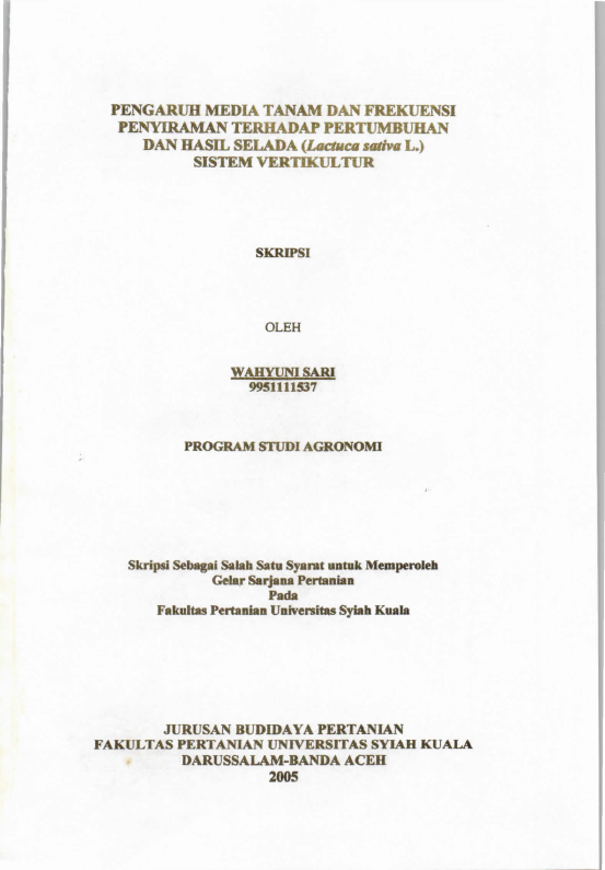 Baca Juga : PENGARUH MEDIA TANAM DAN PEMBERIAN PUPUK UREA TERHADAP PERTUMBUIHAN DAN HASIL TANAMAN SELADA (LACTUCA SATIVAL.) (Safridaini, 2024)
