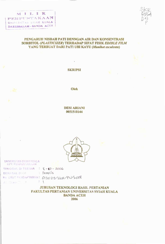 Baca Juga : KAJIAN PEMBUATAN EDIBLE FILM DARI PATI UBI KAYU (MAMHOTSP) DENGAN MEMPERHATIKAN PENGARUH NISBAH AIR TERHADAP PATI, JENIS DAN KONSENTRASI PLASTICIZER YANG DIGUNAKAN (Zaidiyah, 2024)