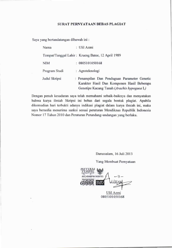 Ulil Azmi, PENAMPILAN DAN PENDUGAAN PARAMETER GENETIK KARAKTER HASIL DAN KOMPONEN HASIL BEBERAPA GENOTIPE KACANG TANAH (ARACHIS HYPOGAEA L). Banda Aceh Fakultas Pertanian,2013