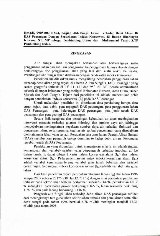 Baca Juga : ANALISIS DAMPAK ALIH FUNGSI LAHAN TERHADAP PENINGKATAN DEBIT BANJIR DI DAS KRUENG ACEH DENGAN MENGGUNAKAN ANALISIS MULTI REGRESI (Jusdi Supriadi Berutu, 2016)