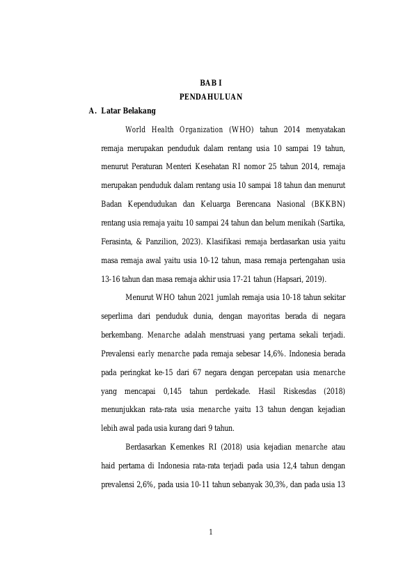 Baca Juga : HUBUNGAN PENGETAHUAN MENSTRUASI DENGAN KECEMASAN PADA REMAJA PUTRI DALAM MENGHADAPI MENARCHE (Nurul Izza, 2024)