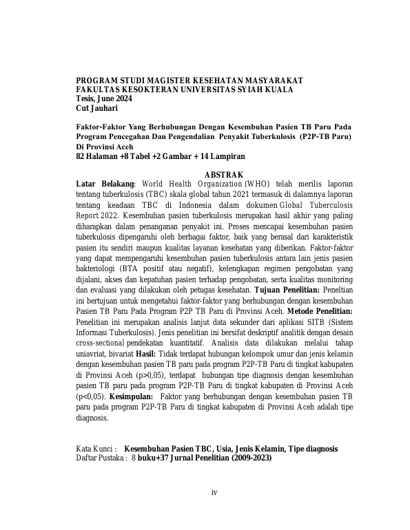 Baca Juga : ANALISIS FAKTOR YANG BERHUBUNGAN DENGAN KEJADIAN TUBERKULOSIS PARU RELAPS DI RSUD DR. ZAINOEL ABIDIN BANDA ACEH (KHAIRUN NISA, 2017)