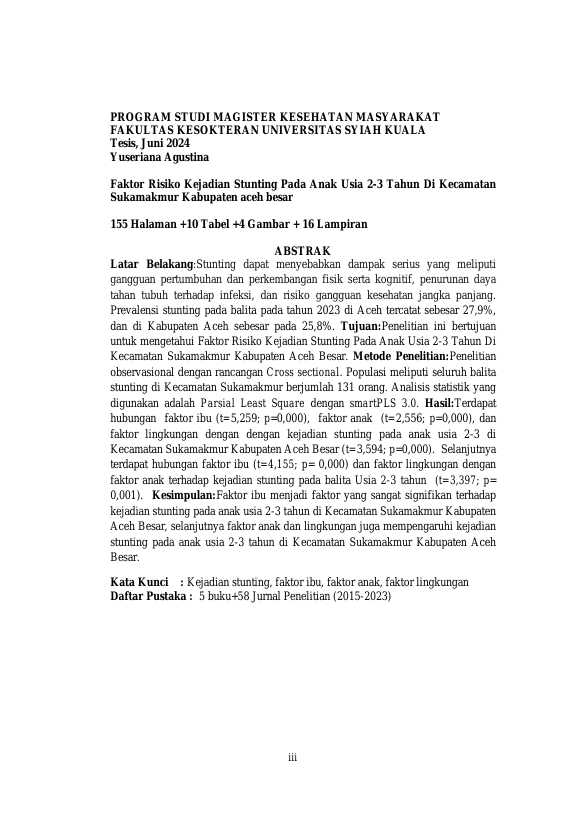Baca Juga : HUBUNGAN FAKTOR-FAKTOR RISIKO KEJADIAN STUNTING PADA BADUTA USIA 6-24 BULAN DI KECAMATAN BAITUSSALAM KABUPATEN ACEH BESAR (Irma Agustina, 2022)