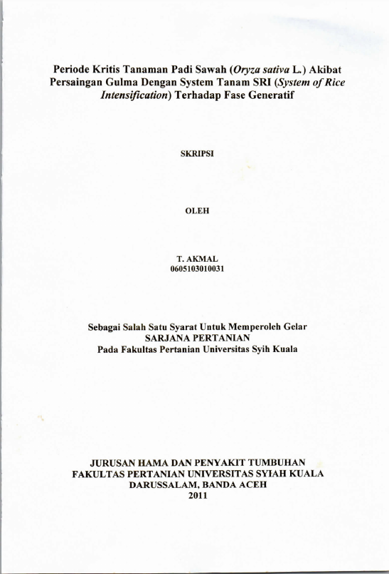 Baca Juga : PERIODE KRITIS GULMA PADA TANAMAN PADI SAWAH (ORYZA SATIVA L.) FASE VEGETATIF DENGAN MENGGUNAKAN SYSTEM TANAM SRI (SYSTEM OF RICE INTENSIFICATION) AKIBAT PERSAINGAN DENGAN GULMA (Gunedi Ariga, 2024)