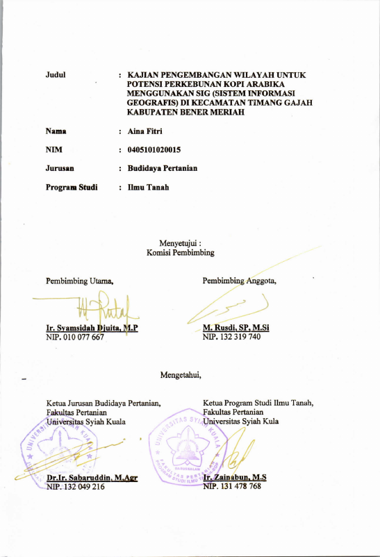 Baca Juga : PEMETAAN ATRIBUT KEBUN KOPI (COFFEA SP.) EKSISTING DAN POTENSI BERDASARKAN TOPOGRAFI DI KABUPATEN BENER MERIAH. (DIKA YUDITIRA, 2024)