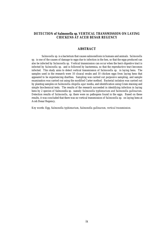 Baca Juga : DETEKSI CEMARAN SALMONELLA SP. PADA TELUR AYAM RAS DI PETERNAKAN DUSUN SILAOK, KECAMATAN MUNGKA, KABUPATEN LIMA PULUH KOTA, PROVINSI SUMATERA BARAT (NURZETINA, 2021)