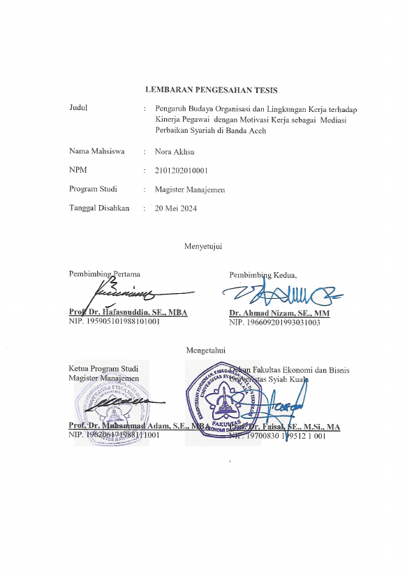 Baca Juga : PENGARUH MOTIVASI KERJA, LINGKUNGAN KERJA, DAN BUDAYA ORGANISASI TERHADAP KINERJA KARYAWAN DAN DAMPAKNYA PADA KINERJA BANK ACEH SYARIAH DI KOTA BANDA ACEH (Fachreza, 2018)