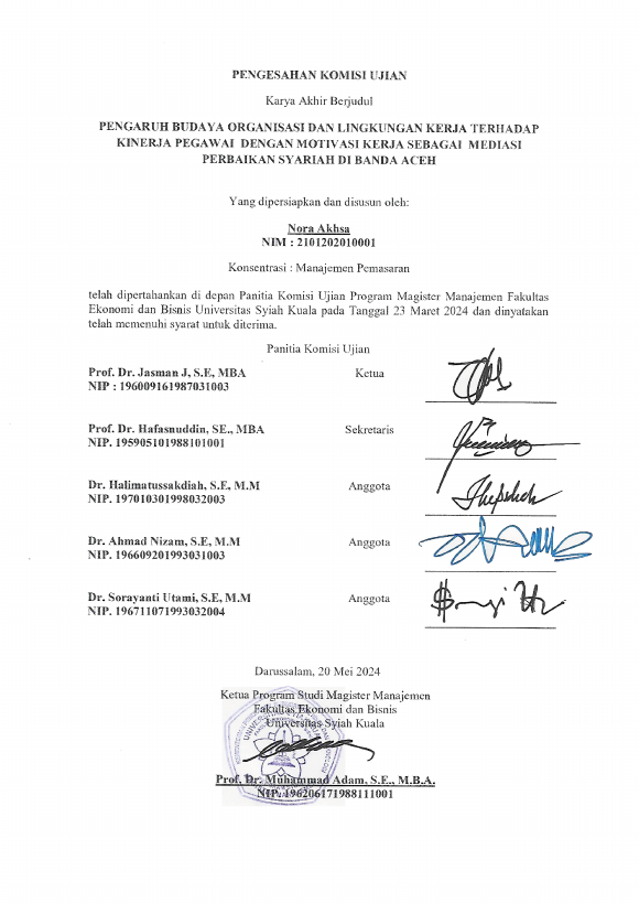 Baca Juga : PENGARUH MOTIVASI KERJA, LINGKUNGAN KERJA, DAN BUDAYA ORGANISASI TERHADAP KINERJA KARYAWAN DAN DAMPAKNYA PADA KINERJA BANK ACEH SYARIAH DI KOTA BANDA ACEH (Fachreza, 2018)