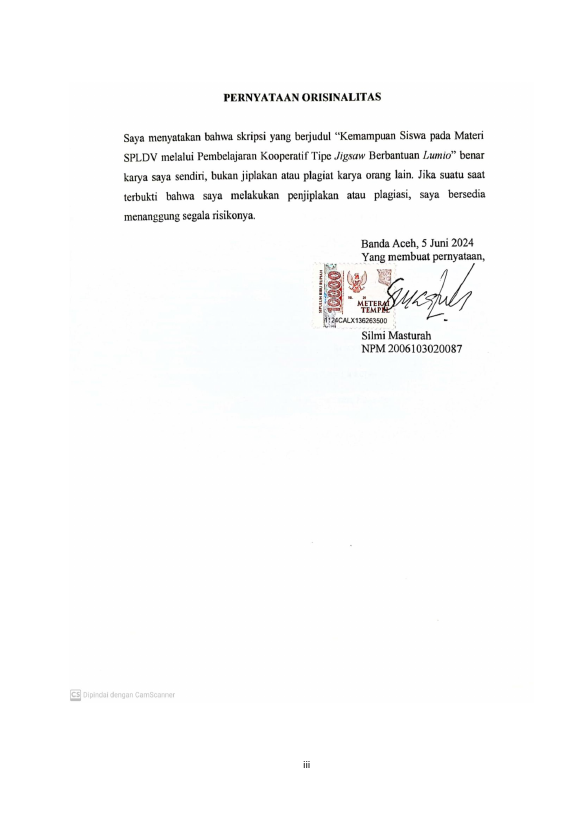 Baca Juga : PENERAPAN MODEL PEMBELAJARAN RECIPROCAL TEACHING TERHADAP KEMAMPUAN KOMUNIKASI MATEMATIS SISWA PADA MATERI SPLDV KELAS VIII SMP NEGERI 13 BANDA ACEH (Nurul Khotimah, 2024)