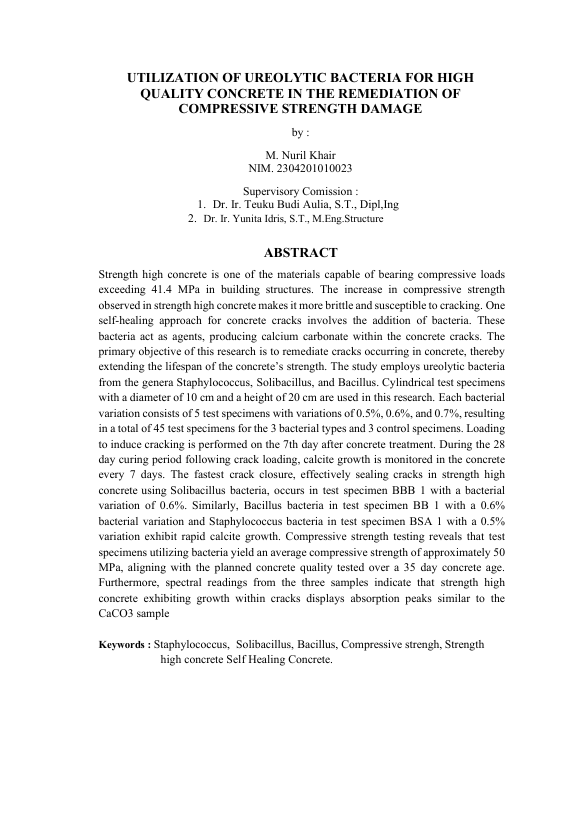 Baca Juga : PENGGUNAAN BAKTERI STAPHYLOCOCCUS SP. SEBAGAI MEDIA SELF HEALING CONCRETE TERHADAP KUAT TARIK BELAH BETON MUTU TINGGI (Hafiz Rizdy Maulana, 2025)